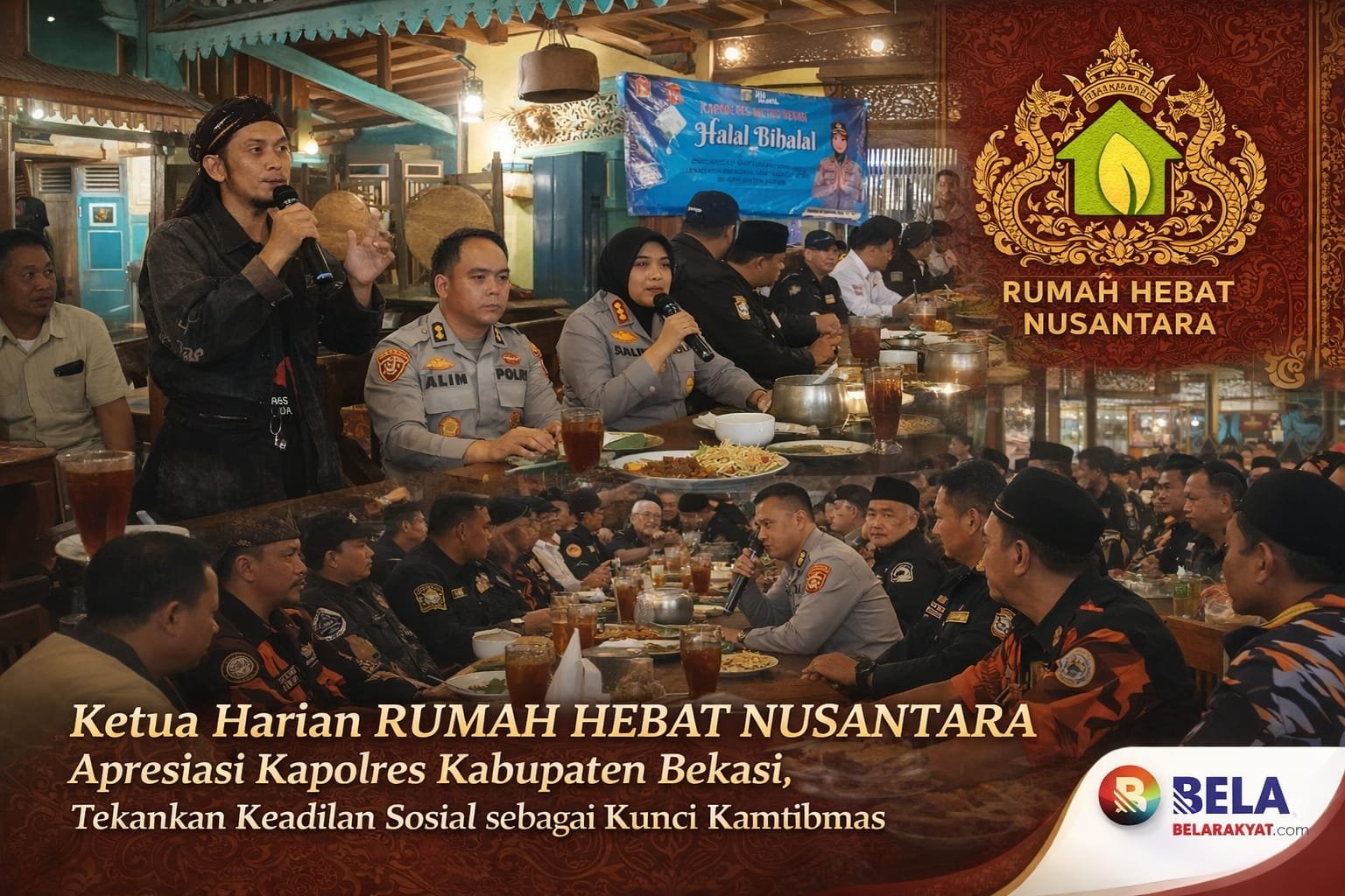 Di penghujung acara, Ketua Harian RUMAH HEBAT NUSANTARA, Moh Cahyadi atau Den Cupank, memberikan apresiasi mendalam atas langkah Kapolres Metro Bekasi, Sumarni, S.I.K., S.H., M.H., Ia menilai pendekatan yang menjunjung pemerataan (baik ekonomi, sosial, maupun derajat kemanusiaan) selaras dengan ruh falsafah daerah.
